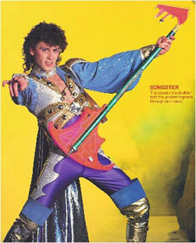 I speak, as you've probably guessed from the editorial title, of the Power Tour. This live show toured the United States in the winter of 1986-1987, featured many of our favorites "live on stage." He-Man, She-Ra, Man-At-Arms, Rokkon, Orko, Skeletor, Evil-Lyn, Beast Man, Ninjor, Blast-Attak, Hordak, and the Sorceress all made appearances. Two new characters who appeared only in the show were featured -- a general whose name I can't recall (we'll call him "General"), and Songster, an Eternian bard with a magical guitar who set the stage for the story, accompanied with song, and told us of the old days of Eternia. I'm going to describe it as best I can, but my memories are over twelve years old, so they're a bit fuzzy.